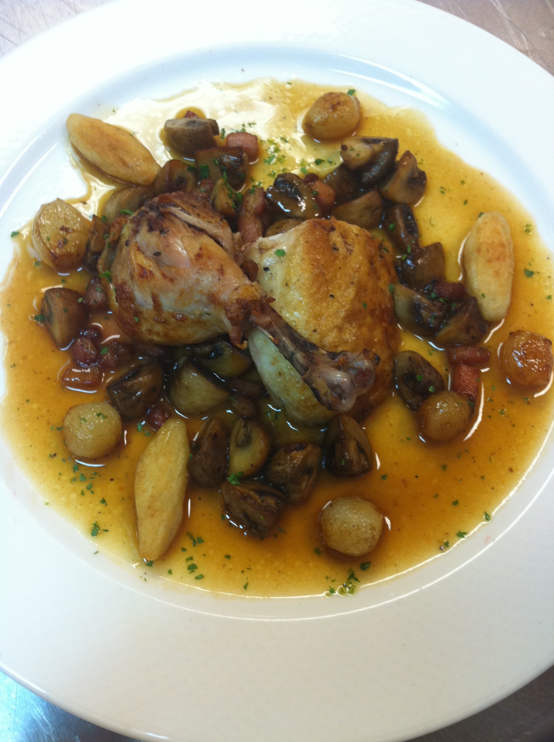 The result? Still some beautiful tasting food, if Anne and I do say so ourselves. Below is Grandma’s chicken (a whole roasted chicken with bacon and mushrooms for depth of flavor):