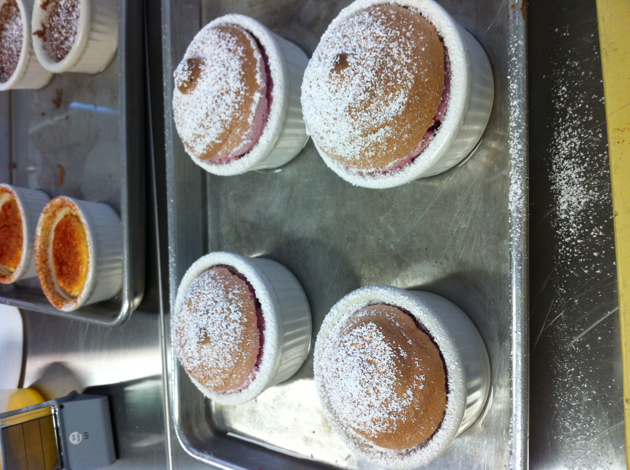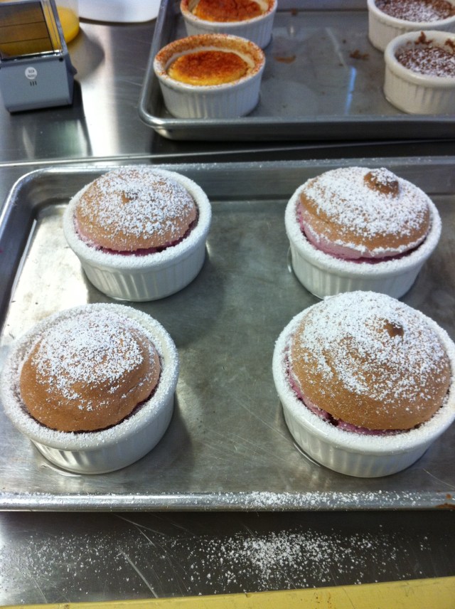 I will be repeating this whole lesson on the weekend, as I’m not a naturally talented baker. Given that it’s way more of a science than an art, I need to concentrate on the precise measures and knowing exactly when the egg whites have soft peaks v. stiff peaks. You wouldn’t believe the difference it makes in pastries, mousses and souffles. The chocolate souffle isn’t all that difficult if you get the whipping correct. I’ll post the recipe tomorrow. Tonight, I have to start studying for our test!
