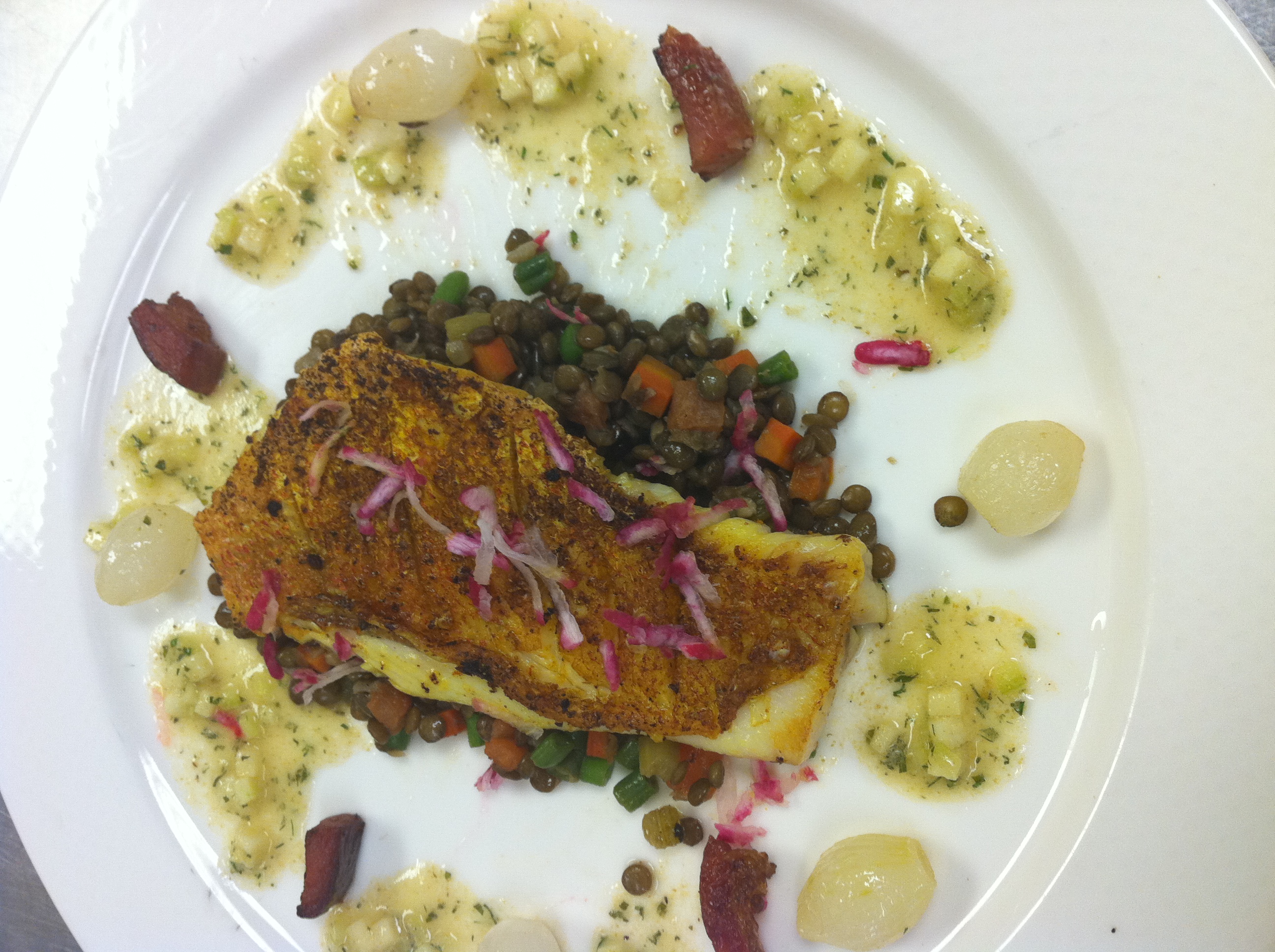 For me, the recipe was a chance to clean another whole fish and to pan fry the fillets to try get a crispy skin on one side. It was pretty successful. The recipe itself had too many components, I think. I’m not sure the curry on the fish went with the horseradish-mustard-apple dressing around the sides of the plate and the lentils underneath. Just too much going on. Nonetheless, it was good practice!