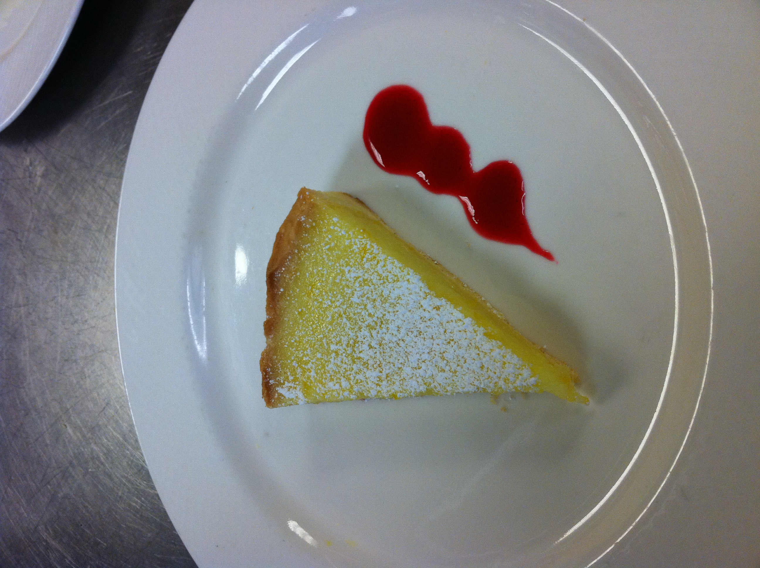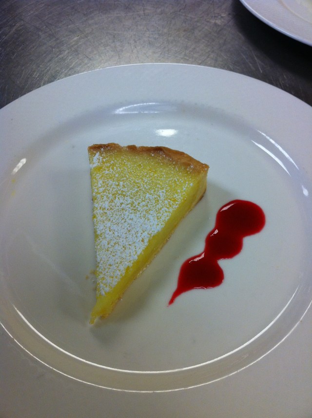 I have been woefully remiss in posting this past week, so this is going to be a long post. I’m going to start out with a recipe of my new favorite dessert (of the week) – the lemon tart. The filling in this tart is fabulous, as it contains about 4-5 fresh lemons! I’m still having trouble with the tart crust recipes – both the pate brisee and the pate sablee. I haven’t loved how either has turned out in my San Francisco kitchen or Shannon’s kitchen in Hawaii. And, on Thursday at school, I ended up with holes in the tart dough because I rolled it too thinly. So, if you find a crust you’ve made for years that you love, I suggest going with one of those. I also think a pine nut crust or an almond flour crust would be excellent with the lemon filling and I think I’ll try that next time I make it. But, the recipe below contains the FCI sweet tart dough. All in all it’s a very easy recipe with a lot of bang for the buck.