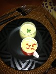 We started with a cold soup duo.  Roasted corn with smoked trout paired with an avocado taster.  Perfect for opening up our pallet.  The next course was a beet salad with friend goat cheese that Shannon made.  Then we dove into lamb chops that were paired with a lovely fig sauce.  From what I can remember the figs were soaked in a port, shallot, coffee, thyme, vegetable stock concoction that was cooked down into a lovely sauce.  Then to finish up the meal we had a homemade lemon tart that was a chance for Rachel to practice for one of her tests this week.  The meal was paired with a couple bottles of Pinots and a French table wine.