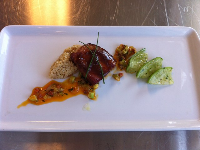 David and I were on garde manger and it was pretty boring since our dishes were not at all complicated to prepare and easy to plate expeditiously. Here is a photo of the pork belly, which was delicious: