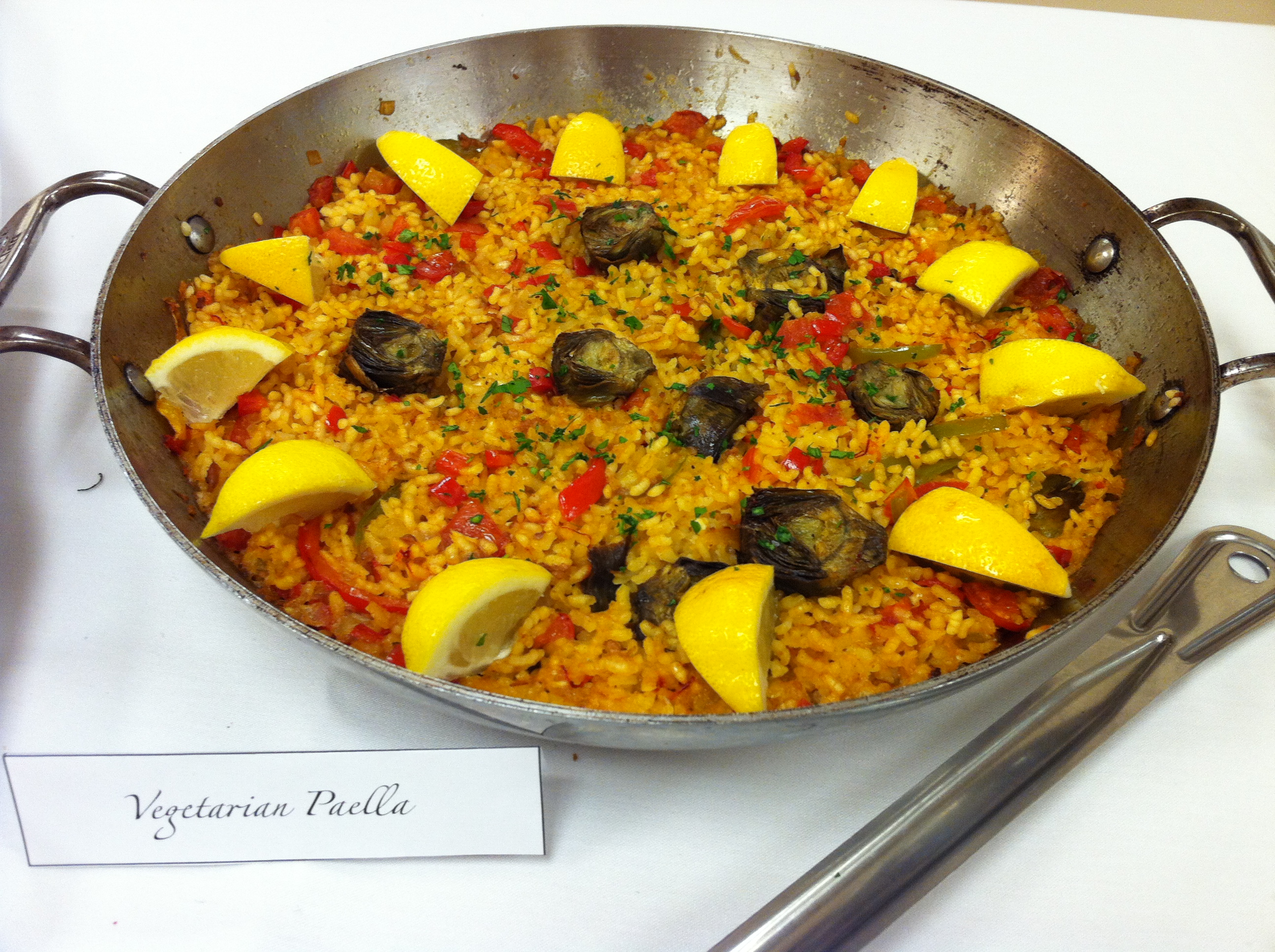 As I mentioned in a previous post, my dishes included octopus tiradito (which is sort of like ceviche, except we quickly poached the octopus first and then kept in court bouillon in the fridge overnight); roasted chanterelle and oyster mushrooms with garlic, white wine and sherry; squash empanadas with a sour cream-ancho-chipotle dipping sauce; vegetarian paella; and lime sorbet with espelette (a yummy red pepper).