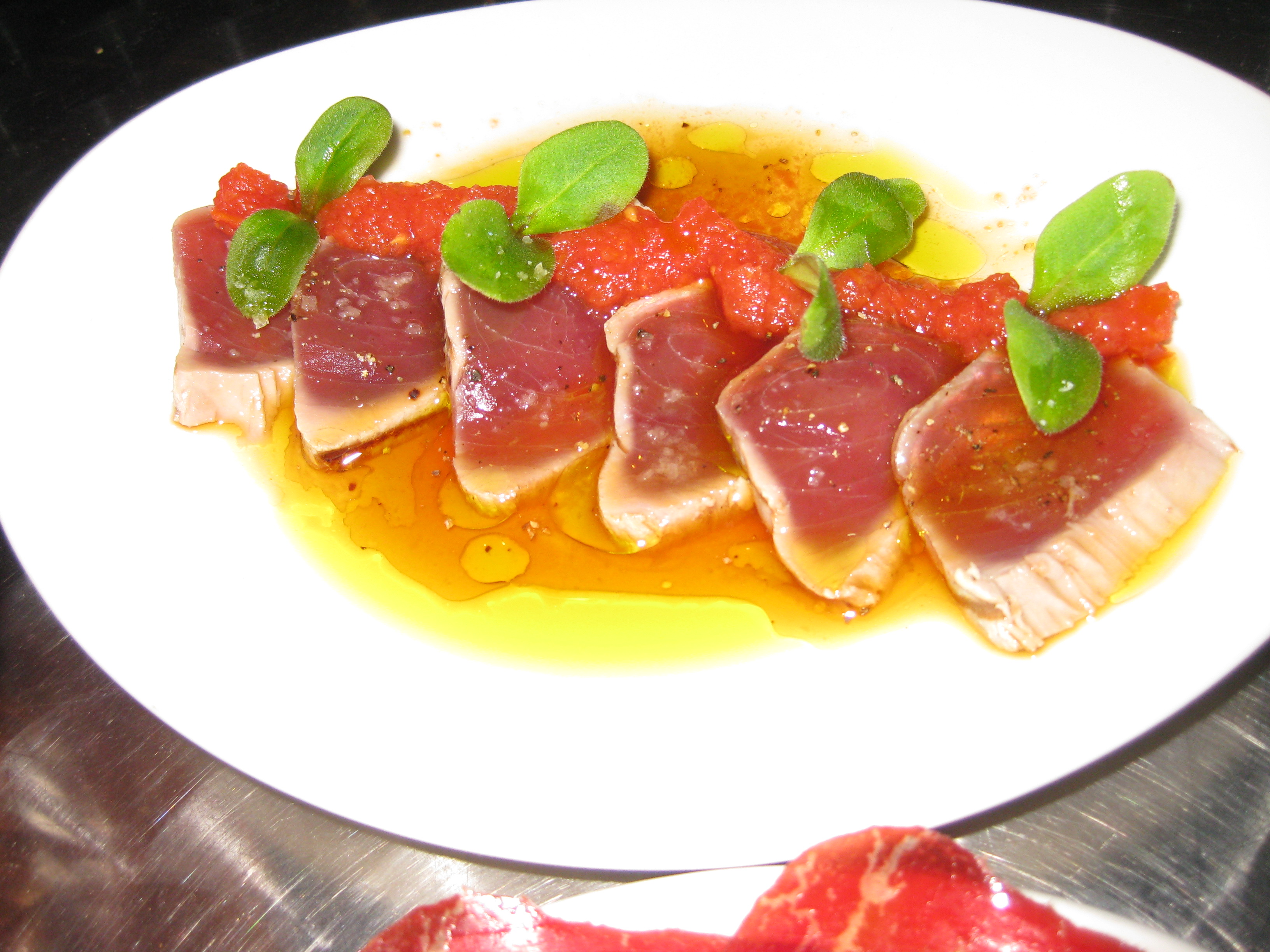 Tangent: the picture at top is one of the courses we ate at Lolita Monday night. Remind anyone of Hawaii? Seared ahi tuna, rare inside, topped with a light ponzu and a fresh tomato fondue of sorts. Delicious! Our last course was chicken that was rolled in potato chips and then deep fried. That is a child’s dream right there.