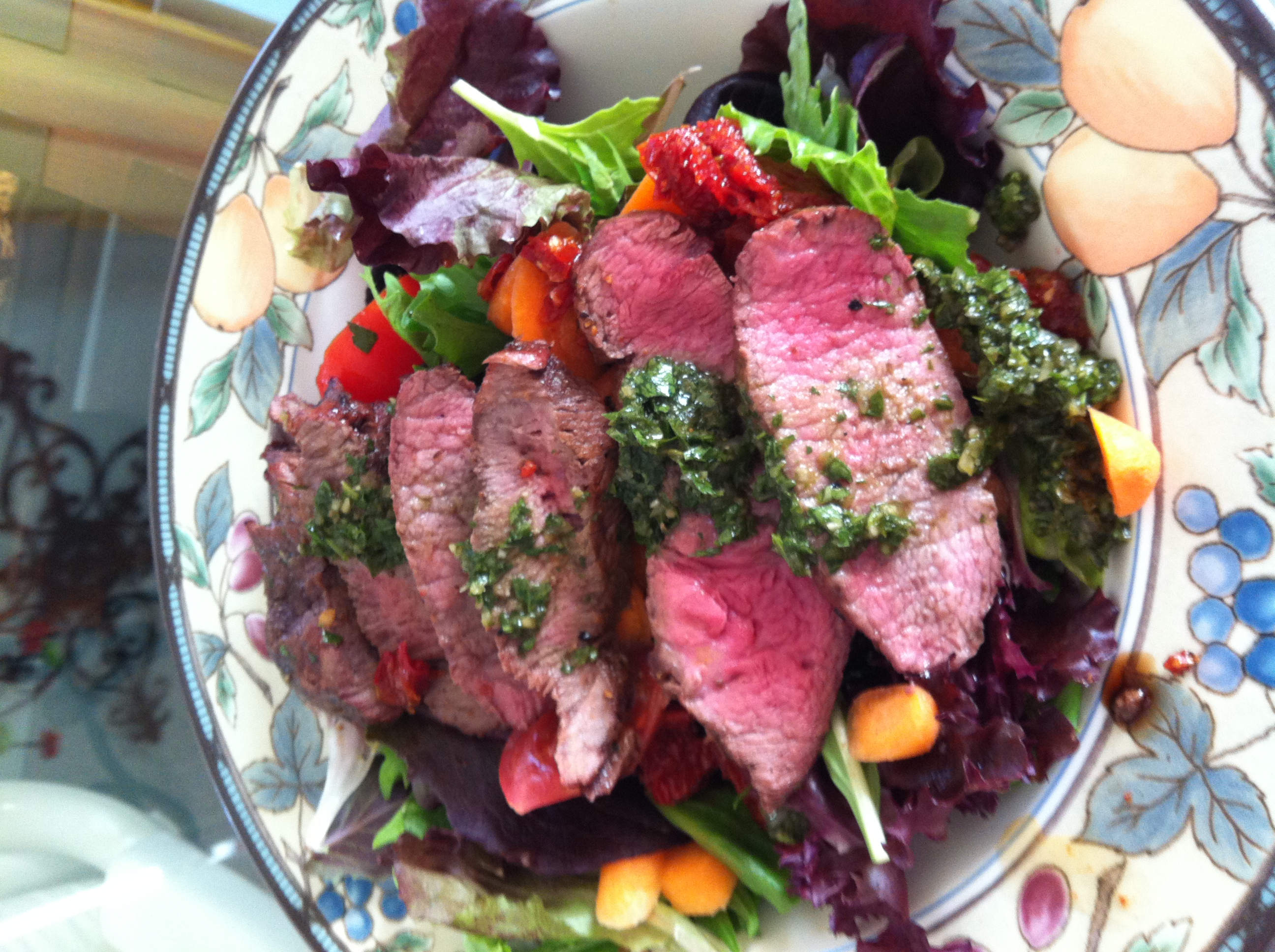 Steak salad is a great way to use up yesterday’s left over steak: