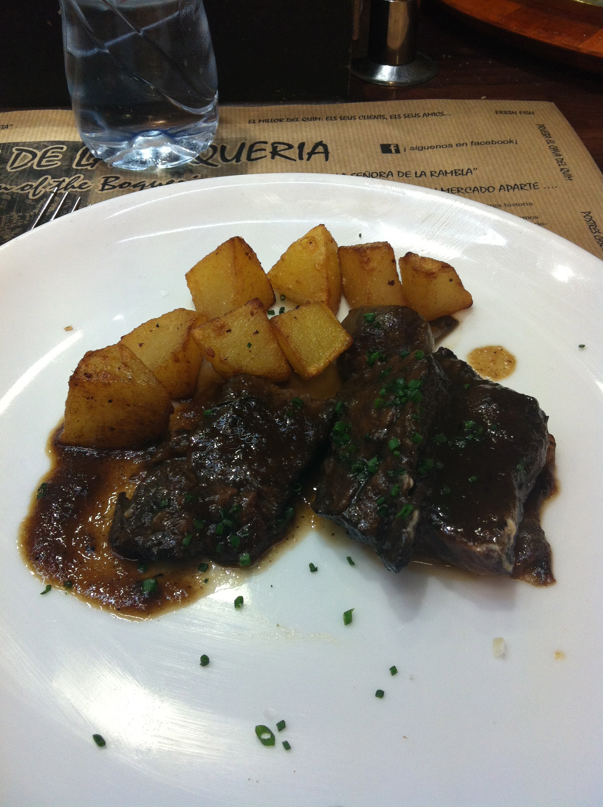 Yuri was impressed with the amount of food I consumed today. I had breakfast at the apartment at 6:30 a.m., then I ate second breakfast at Quim’s at around 9, then some curry, then some gazpacho, and finally some beef and potatoes. What? My stomach was feeling good today, so I went for it.