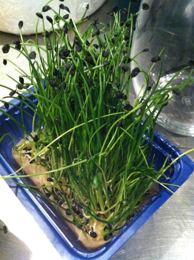 I did a fun micro greens tasting and they made me guess at what I was tasting. Unfortunately, the first micro green I tasted was a cross between an onion and garlic, so that kind of blew my palette. I was bad at guessing the rest, although I could use descriptive words such as “picante” to describe the pepper micro green. I couldn’t guess mustard green for the life of me, although I knew what it was because I had tasted it before. I think visually they were throwing me off, as well, as I hadn’t seen these versions of micro greens. They really do add another dimension to the food, and they are all selected with particular dishes in mind.