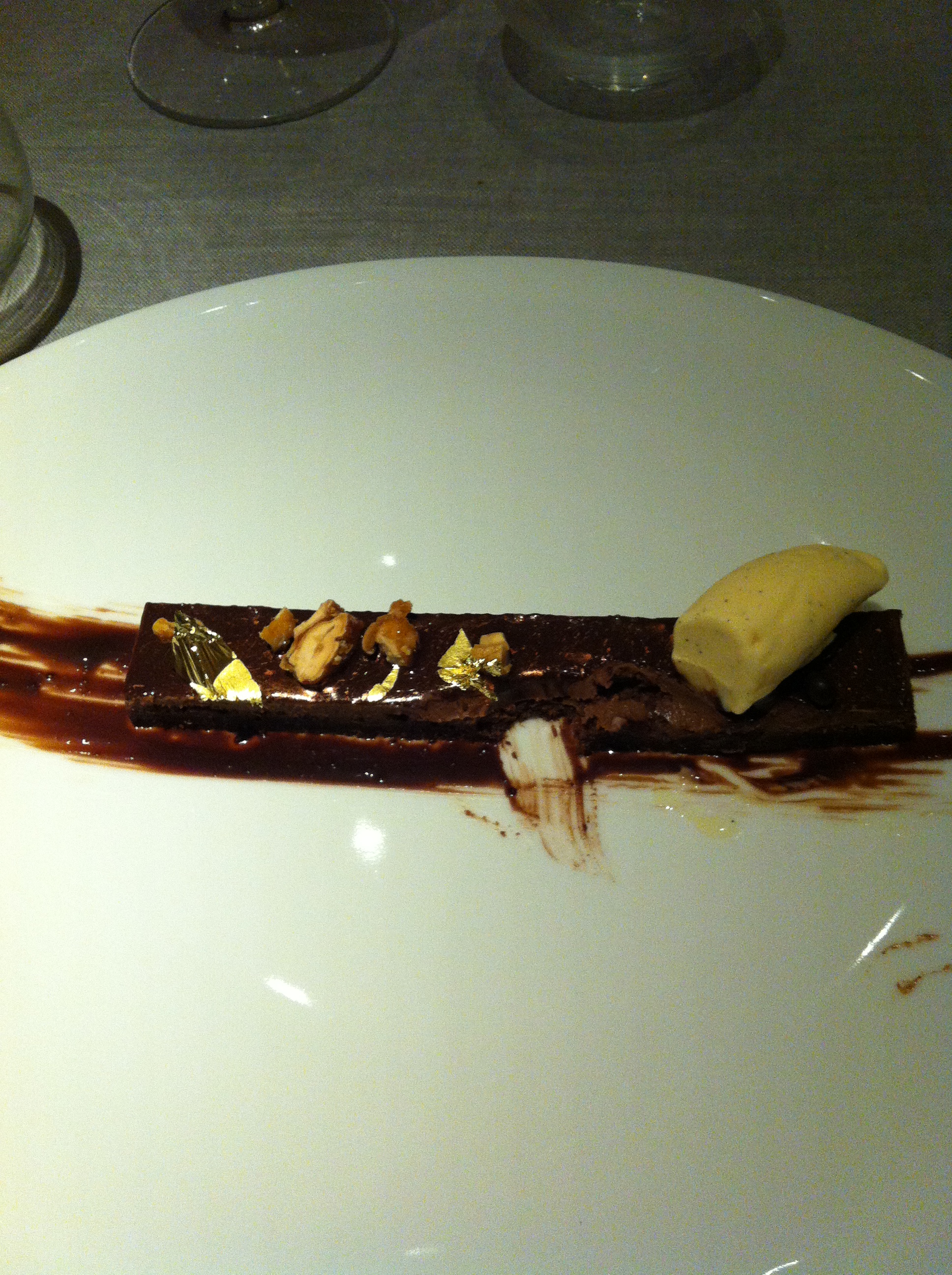 I was hoping they would redeem themselves by employing a rock star pastry chef, as I do love my sweets. The first dessert was a cherry cake with cherry foam. It was good. But, that’s all it was. Then, the last dish of the evening continued to disappoint – hugely! Disclaimer: I love chocolate and have tasted a fair share in my life, so that means I’m a tough critic when you serve me an all-chocolate dessert. That said, if you’re going to serve me a dark chocolate log with a few walnuts and a not so vanilla-y vanilla bite of ice cream, your log better be phenomenal.