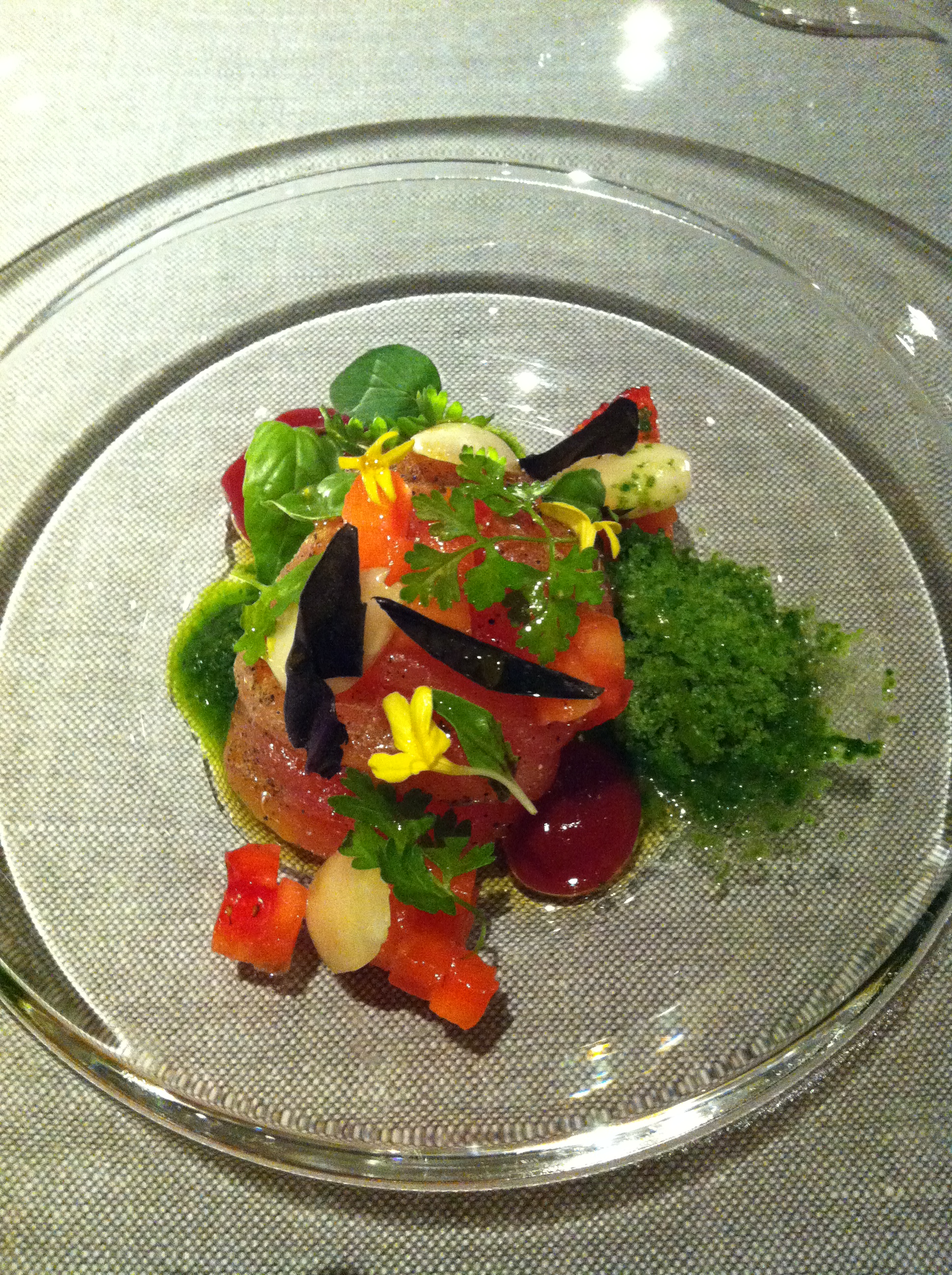 Yes, the actual plates they served the food on were nice, and some of the presentations were lovely, like this tomato salad below, but worthy of a Michelin star? In my opinion, no way.