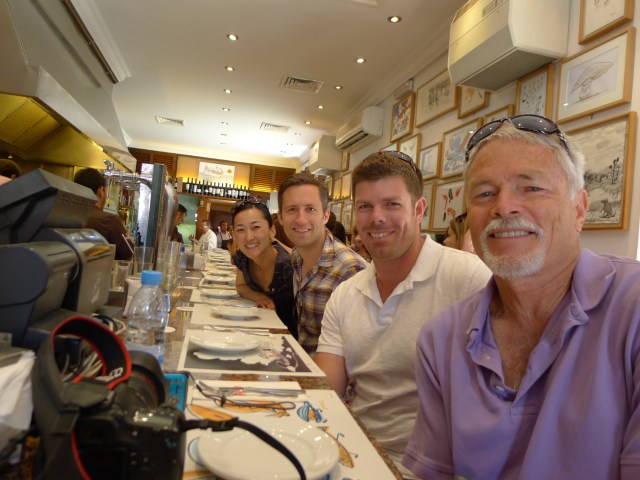 Here’s a pic of half of our party in Cal Pep. I was, along with 3 others, at one end of the bar, so you can see that the place is not very big. That’s why it’s necessary to get in line about 1 hour before it opens. We did. There are a lot worse things than waiting with friends you love and drinking a couple of bottles of cava while you wait 😉
