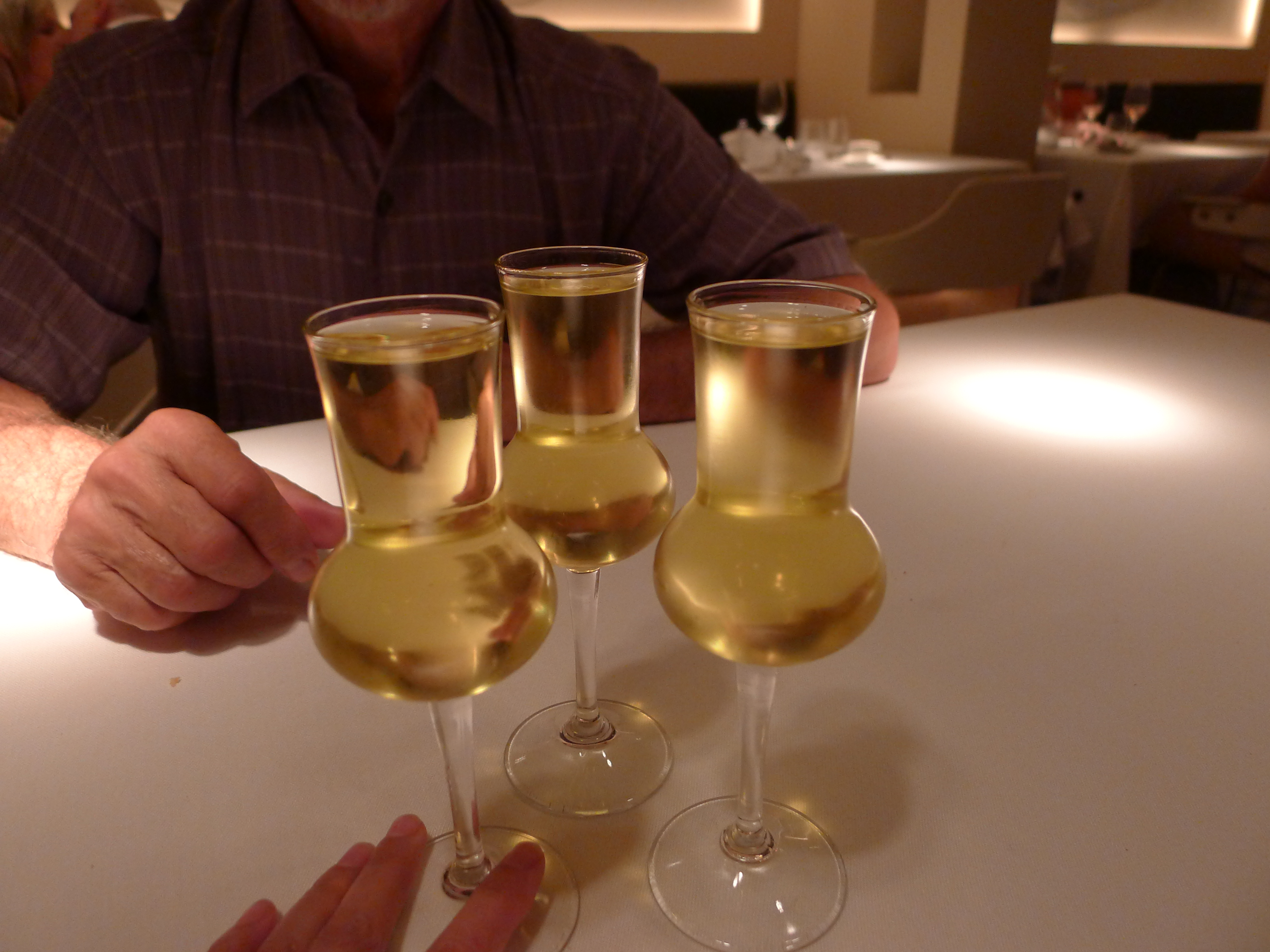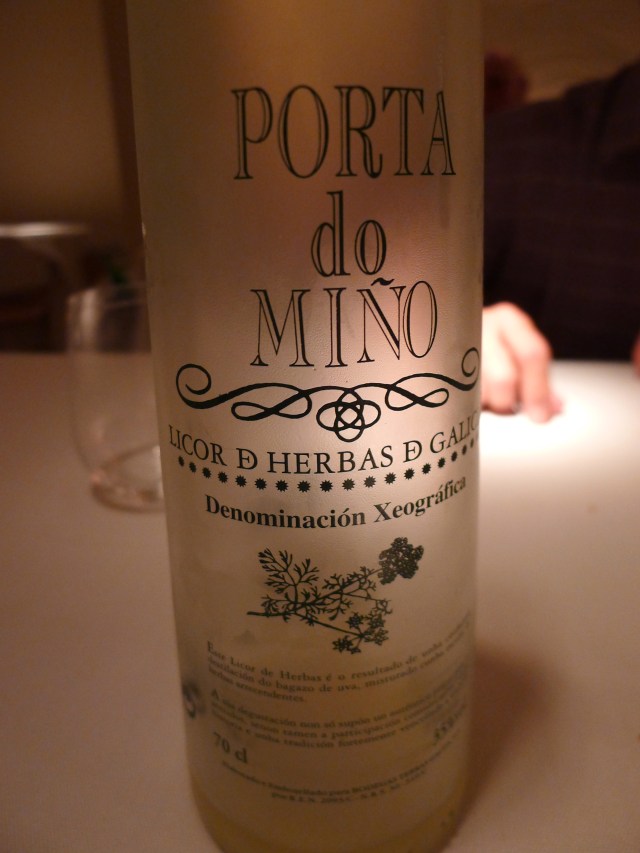 Finally, I asked for an after dinner licor that would go with our petit fours but that wasn’t too sweet. The sommelier brought out the bottle of what translated into “herb liquor”. It was delicious and dangerous.