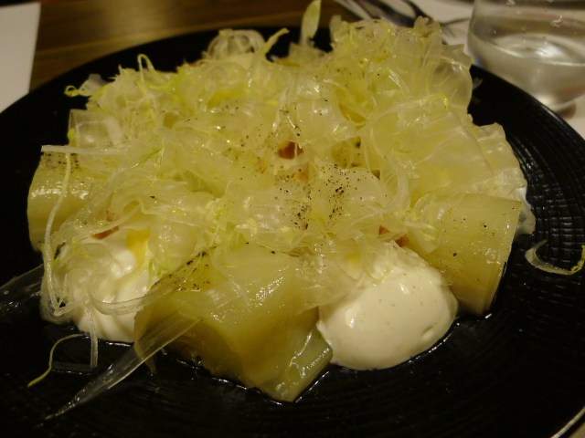 And, 2) There’s a tie for 2nd place here, between the truffled, poached egg in cream and the smoked ham. The luxurious mouthfeel of this dish was the star. I think the poached egg was a 63 degree egg (cooked in an immersion circulator), with just the right amount of real, shaved truffles. My only complaint is that it should have been a bit hotter, as a hot dish.