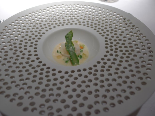 Our tapa was a small almond-milk based soup with a scallop and asparagus on top. It was excellent. Nice and light, bright flavors.