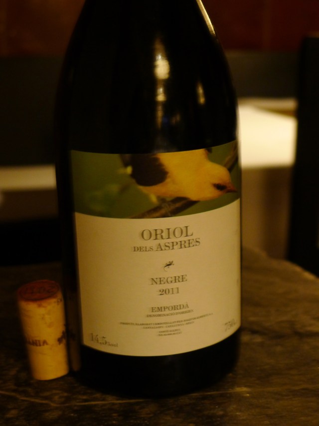 He said, “We wanted to hire local servers from Cadaques.” Well, that’s great, but then train them because when they don’t know the term sommelier – in any of the 3 languages our table spoke – that’s a bad sign. When the second young server didn’t know what cut of meat was on the menu and said, “I don’t know,” that’s a bad sign. How about, “I’ll go find out right away.” Instead, we had to ask her to go find out. What saved the service was the young sommelier. In fact, he ended up being our server because I think he knew we were irritated at the first 2 young women who didn’t know anything. With some coaching, he suggested a great bottle of white which we all very much enjoyed. Here it is: