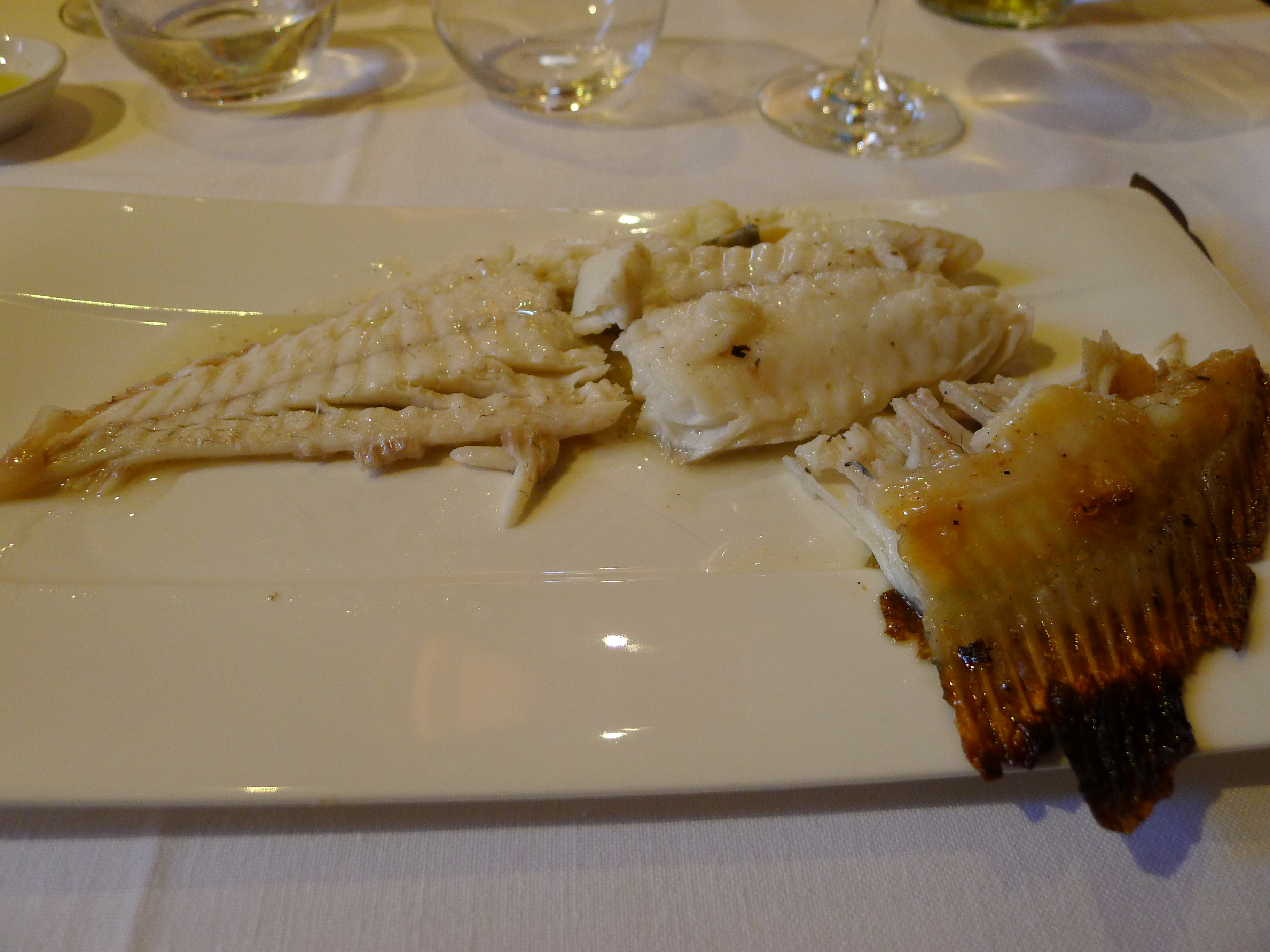 Onto my second favorite dish: fresh turbot. They showed us the fresh, whole fish and then cleaned it, put it in a metal grilling contraption and then put it directly on the open flame on the grill out back. I wished I would have snapped a picture of the outdoor grill and the grilling contraption behind the restaurant. Amazing. Simple. Never going to be allowed in the U.S. due to the potential liability – darn it!