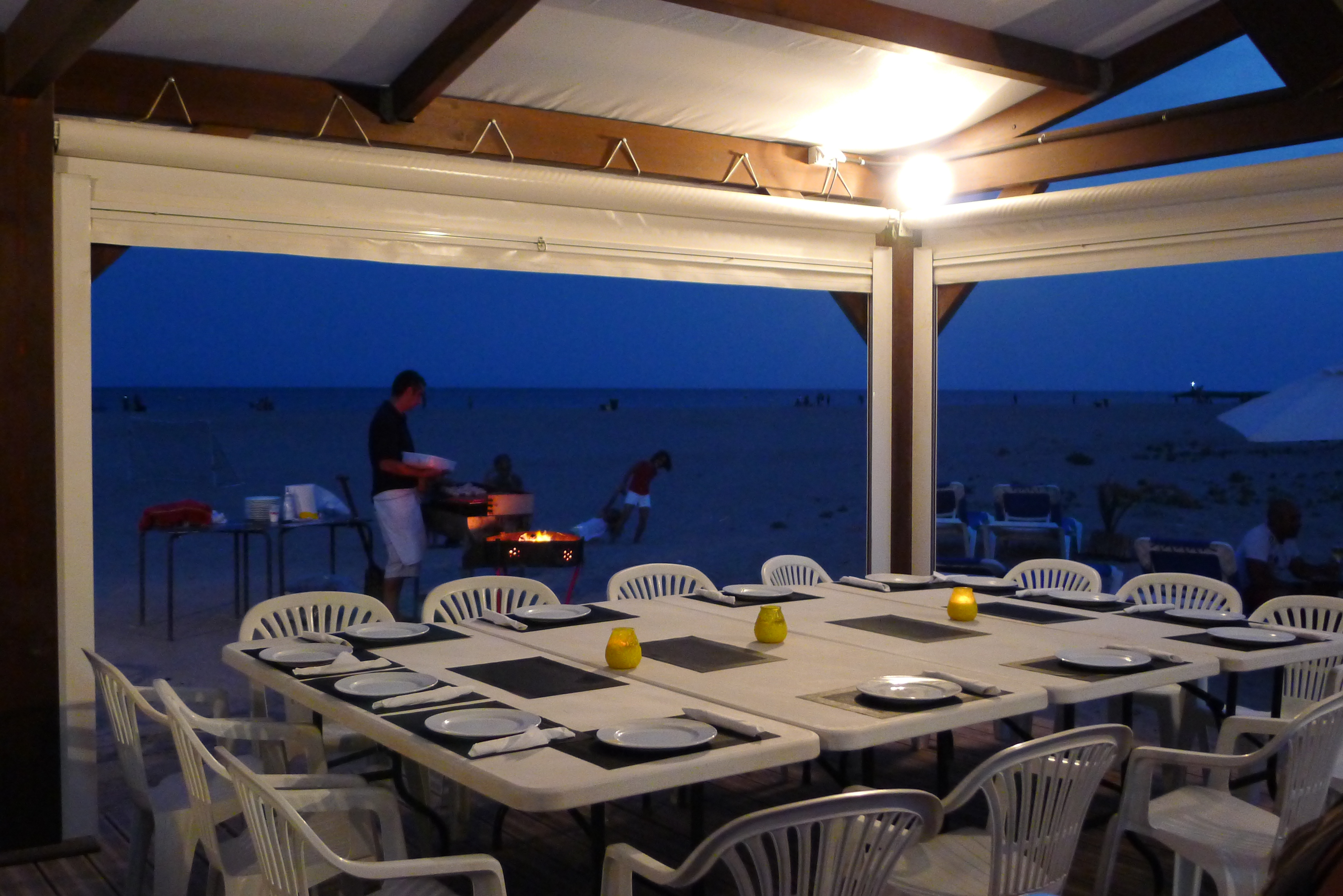 At the very top is a picture of our table at the chiringuito we ate at on the beach. It was a gorgeous evening and there were 14 of us. The food was pretty bad but it was about the company. The company was great.