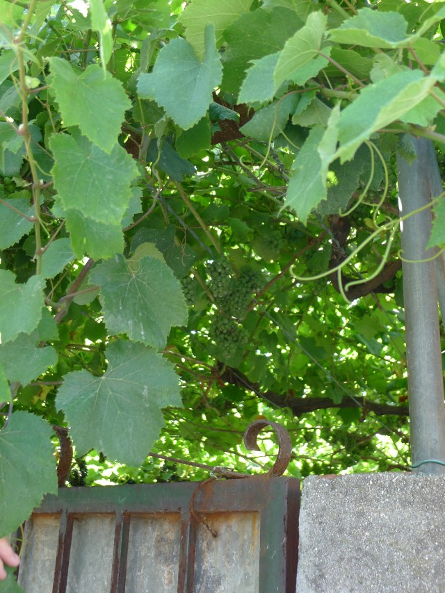 Here’s her small vineyard, which is above a walkway in between her house and the neighbor’s house. It’s all latticed grapes above the walkway.