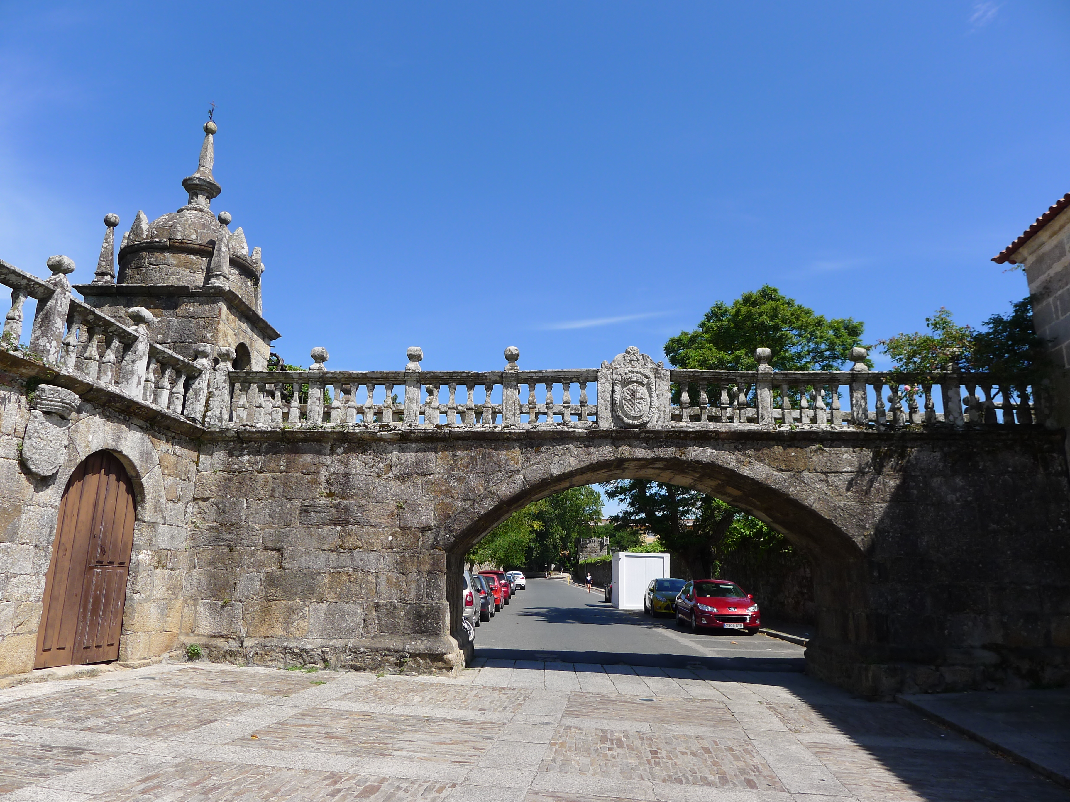 After my bad lunch I decide that now I really need a drink. I start walking on the main road and come upon the old part of the town starting at Praza de Fefiñans. Here’s a view of the entrance to the square: