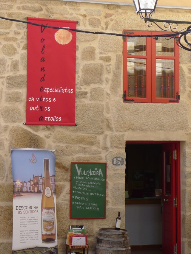 I had heard that some of the best Albariño in this pueblo comes from home brewers – essentially those who have several grape vines and ferment and bottle for home consumption only (and for sale to tourists, apparently). Low and behold, I come upon a cute little green house with gorgeous flowers out front and a sign hanging above telling me they sell Albarino.