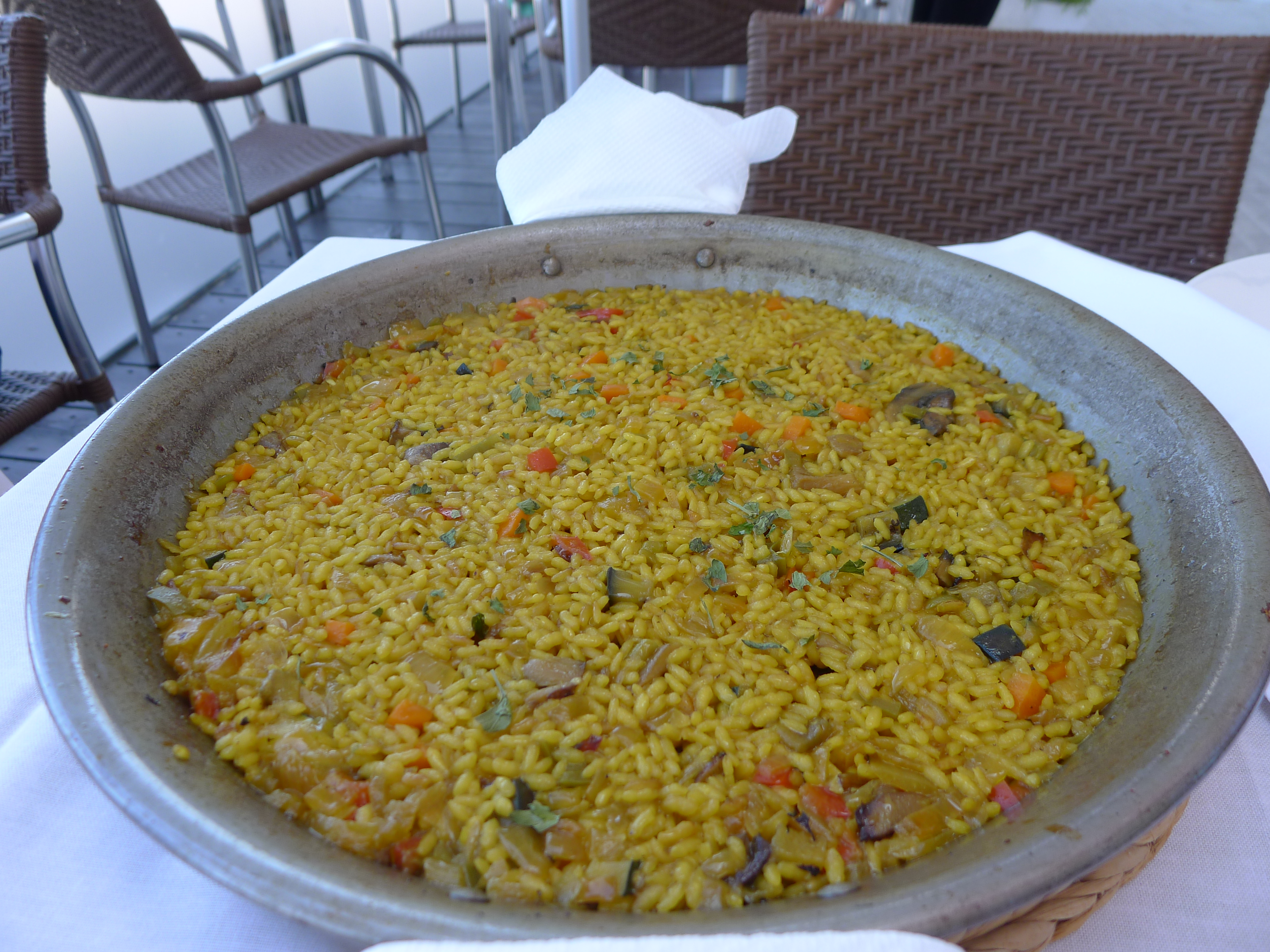 Anyway, I see vegetable paella on the menu and a “traditional Galician cheese salad.” Salad and vegetable rice? I’m all over it, as I’m thinking I better lay off the seafood after last night’s disaster.