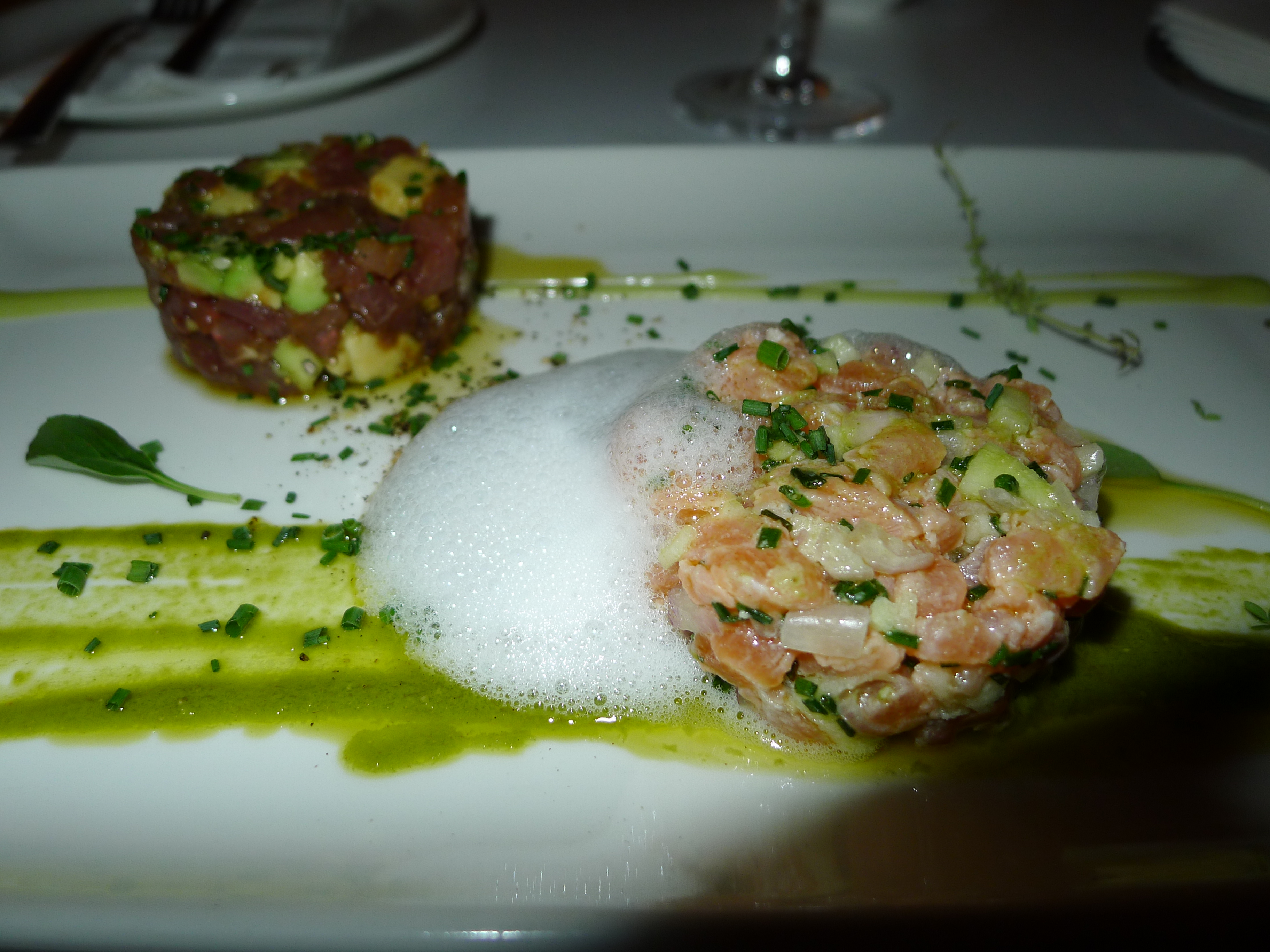 My young waiter knows something is wrong when, after 4 bites, I push the plate away. So, he asks. I try to be nice and say I’m critical because I’m a chef (yep, I pulled the card, mostly because I wanted something else that was good). I say I want you to bring me your best plate. He goes back to the kitchen and comes out with a duo of tartares. I’m thinking “Sh-t! I don’t know if my stomach can handle any more raw fish, and we’re inland so I’m not sure how fresh it is.”