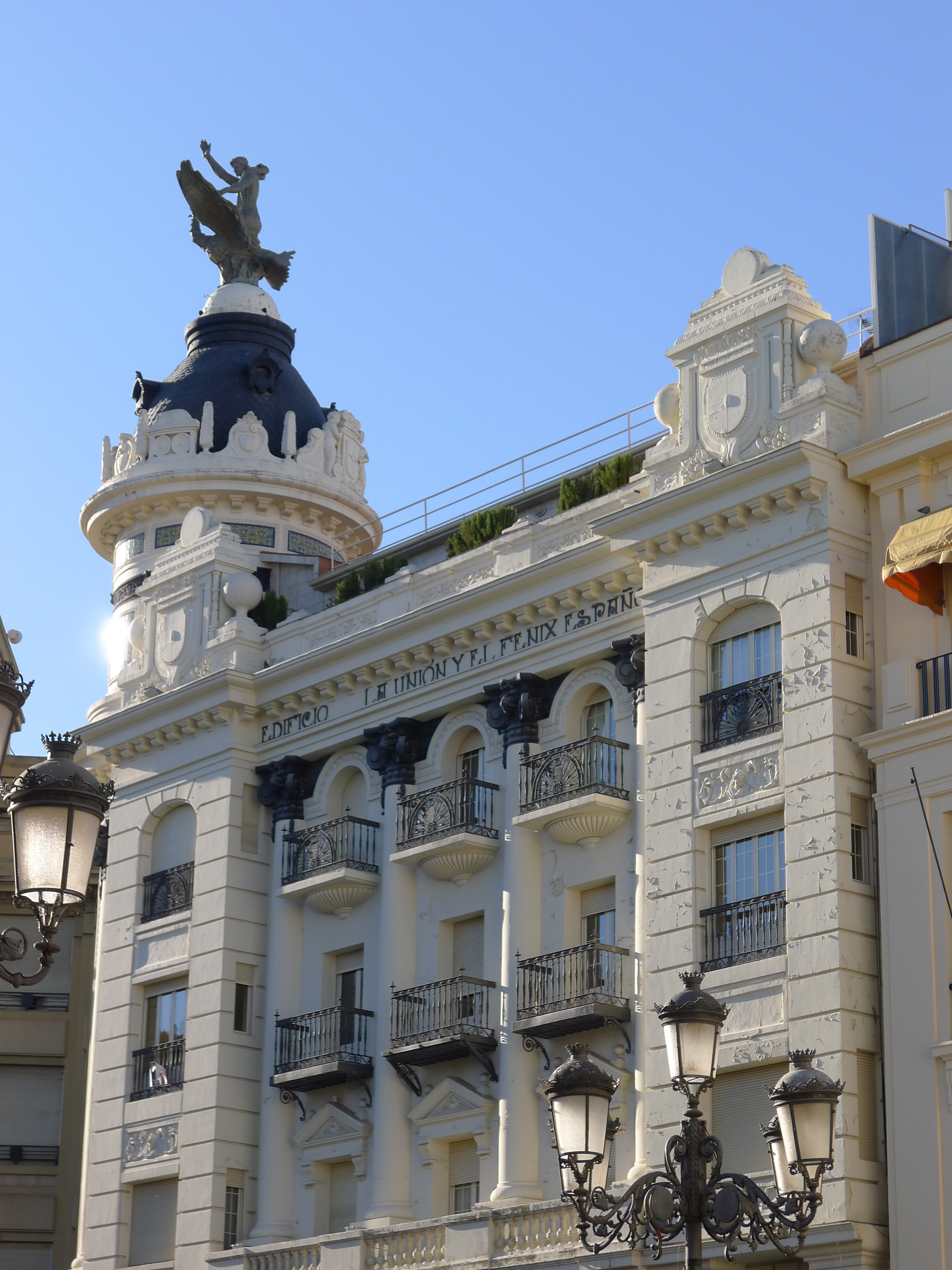 The closer view of the guy riding the bird as well as the ornate work done on the top of the building (I love this one):