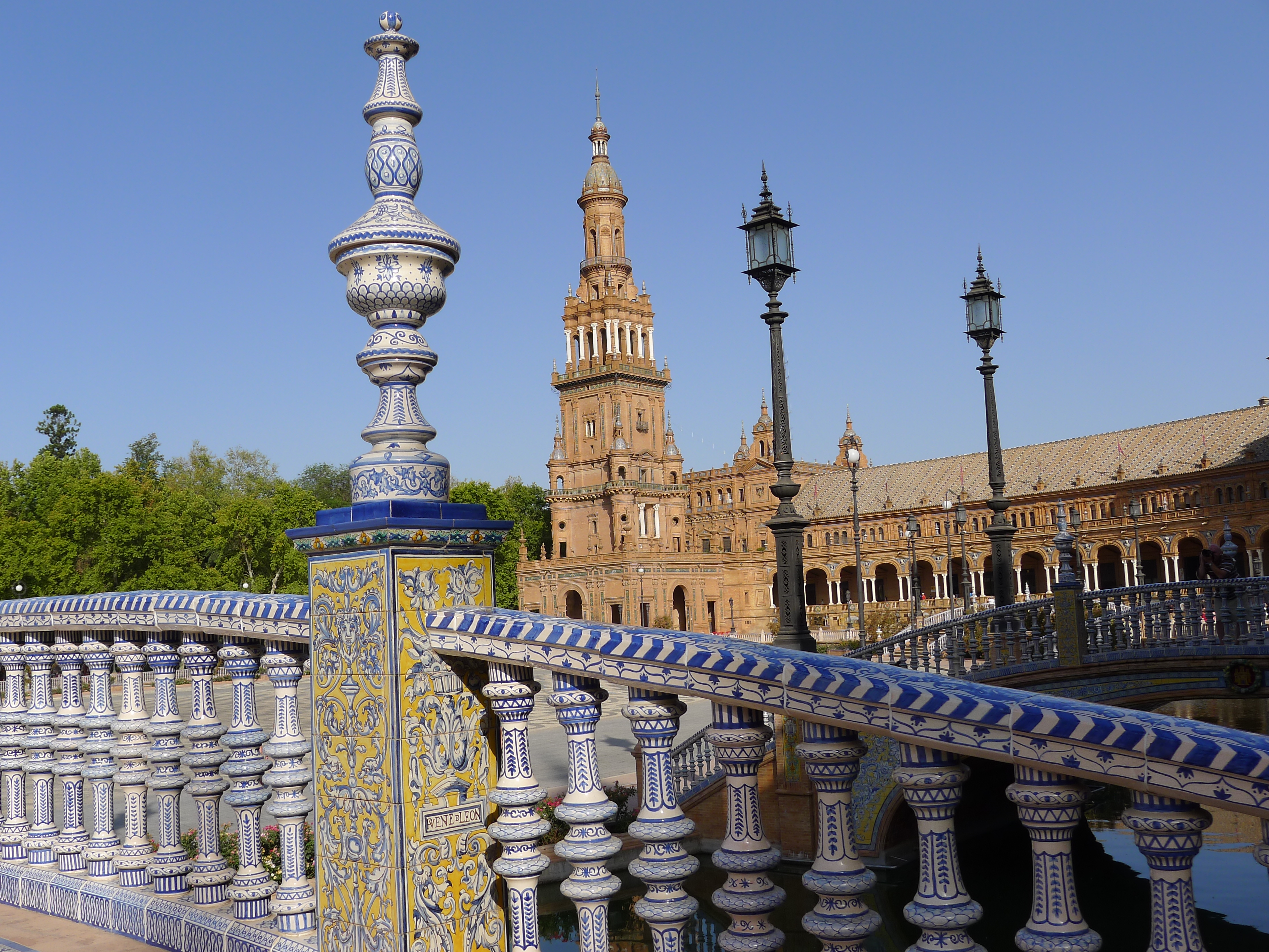 I woke up early so I could do one more “sight” before I headed to Málaga: Plaza España. It seems like every town I’ve been to has a Plaza España. However, this one was exceptional. It was built in 1928 for the Ibero-American Exposition of 1929. The gorgeous government buildings, the fountains, the bridges – all have ornate tile work. Here are a few pics: