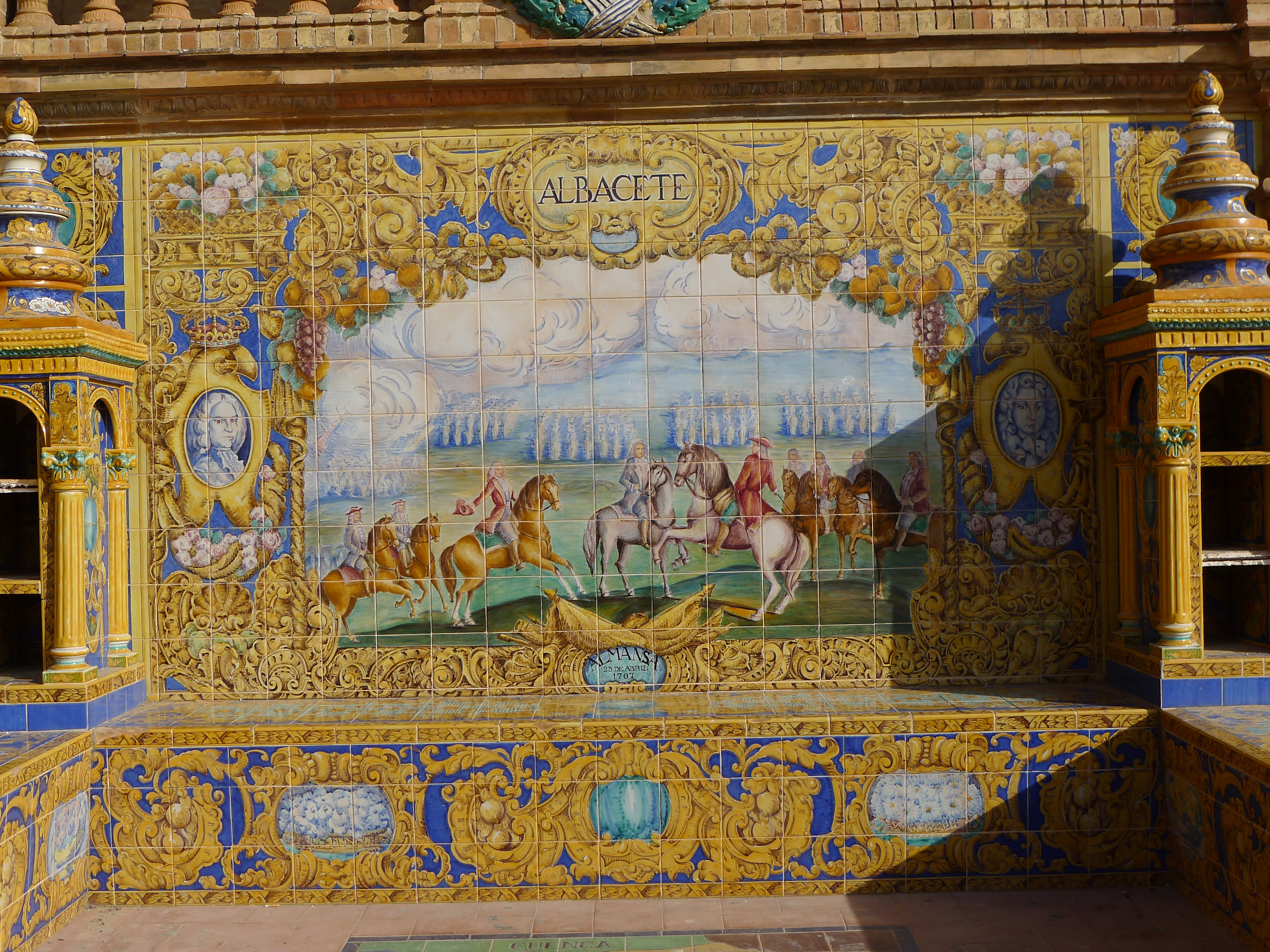 And, for the 1929 expo, they created some 30 different tiled ‘Province Alcoves’ along the walls of the Plaza de España. Here’s Albacete’s: