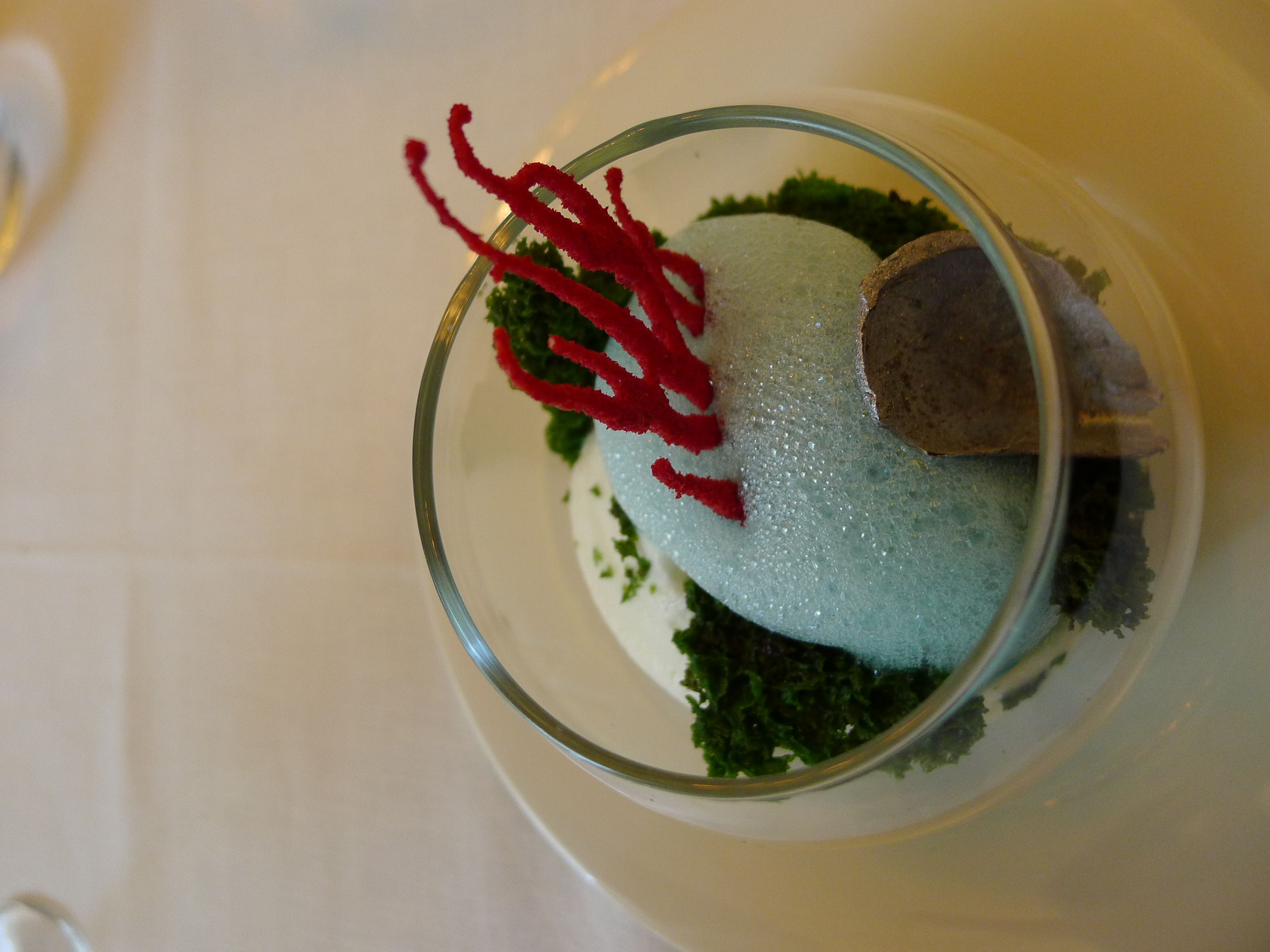 Our favorites: The butterfish tapa, the egg in pastry, the smoke and foie dish, the mushroom soup, the rabbit in mole sauce taco, and the chocolate, sea-themed dessert. All dishes were technically executed to perfection. We thought some flavor profiles were outstanding and others just really good. There wasn’t one dish we didn’t like. So, overall it was superb. And, it was the same price we’ve paid for several bad 1 Michelin star (and some no Michelin star) restaurants in the past. I highly recommend it!