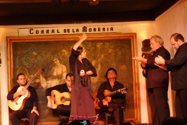 Then, it was on to a flamenco show that night at Corral de la Moreria. C had not been to one and people in Madrid claim to be excellent at flamenco, so we decided to go. Plus, I wanted to see another one to compare it to the show I had seen in Seville a few days earlier. Here’s a photo of a dancer in action: