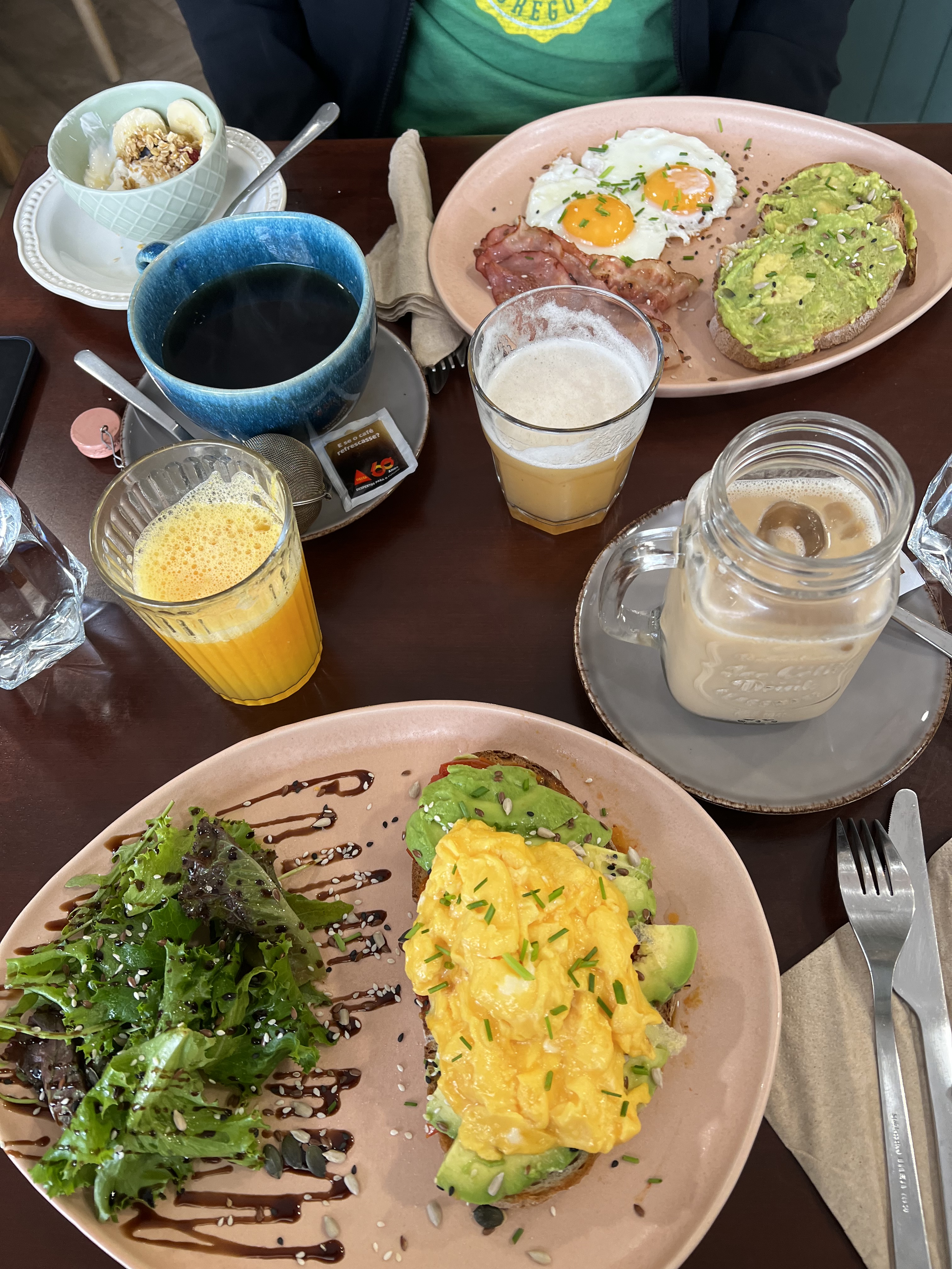 So much fun food to talk about. We had black pork from these cute piggies on Saturday and then we went to our favorite brunch spot today near our house for C’s bday called Oak Café & Brunch in Terrugem.